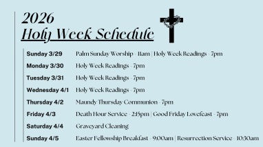 For more information and the schedule for this year's Holy Week and Easter services, see below: